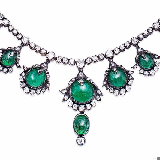 Certified Antique Victorian No Oil 393.00 Carat Russian Emerald Necklace