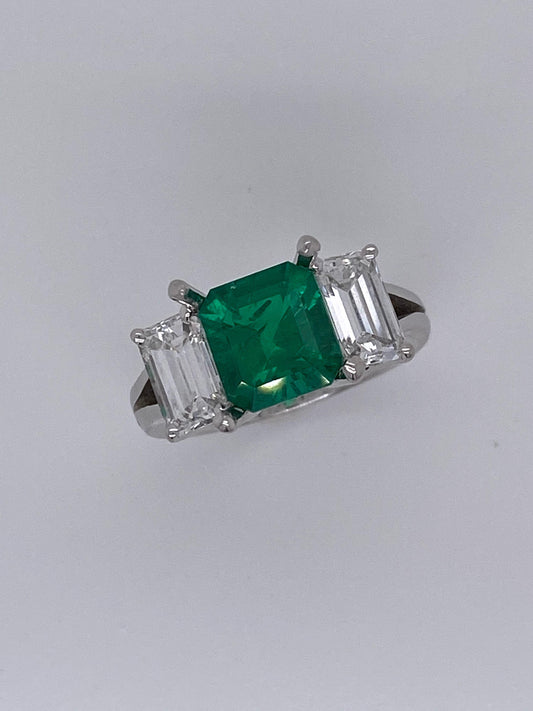 Emilio Jewelry Certified 3.69 Carat Colombian Emerald Ring