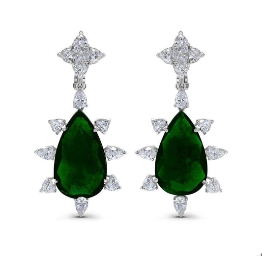 Emilio Jewelry Certified 33 Carat Colombian Emerald Diamond Earrings