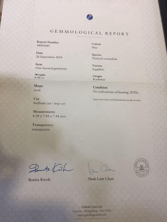 Emilio Jewelry Certified 4.98 Kashmir Sapphire Ring