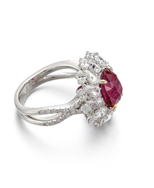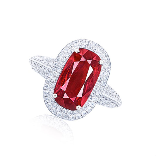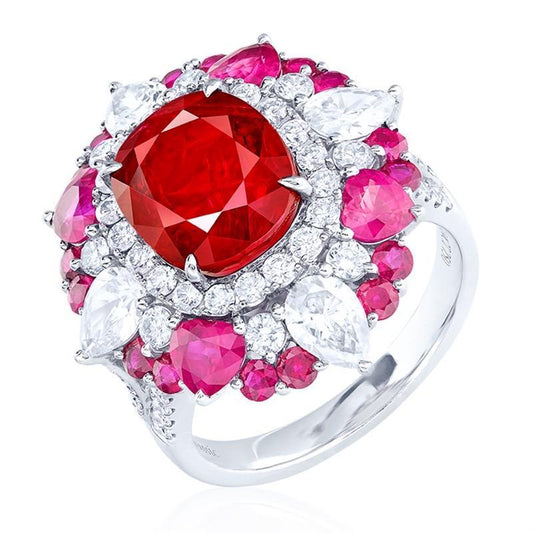 Emilio Jewelry Certified 4.00 Carat Untreated Ruby Diamond Ring