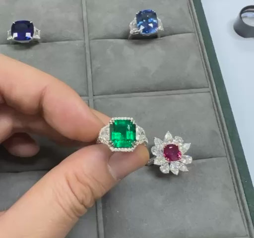 Emilio Jewelry Certified 4.00 Carat No Oil Muzo Vivid Green Emerald Ring