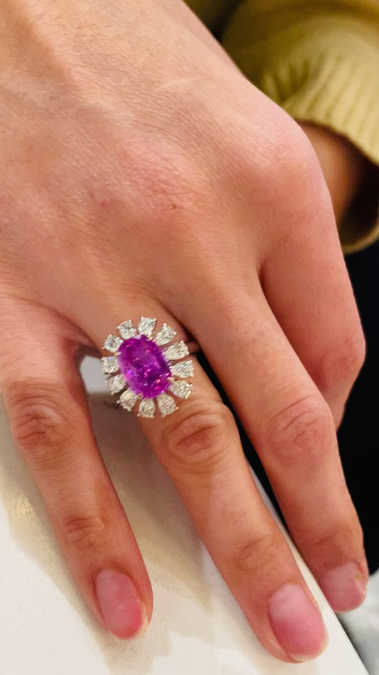 Emilio Jewelry Certified 5.90 Carat No Heat Pink Sapphire Ring