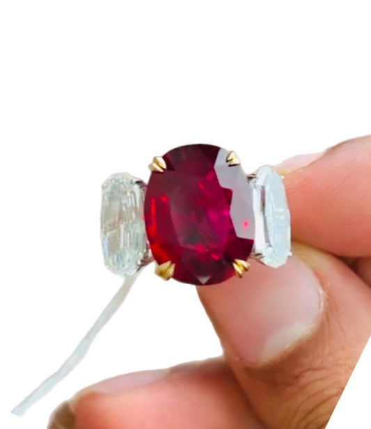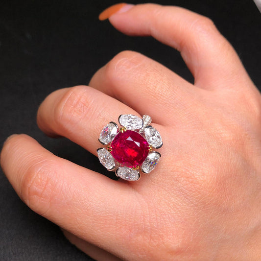 Emilio Jewelry Certified 7.89 Carat Untreated Burma Ruby Ring