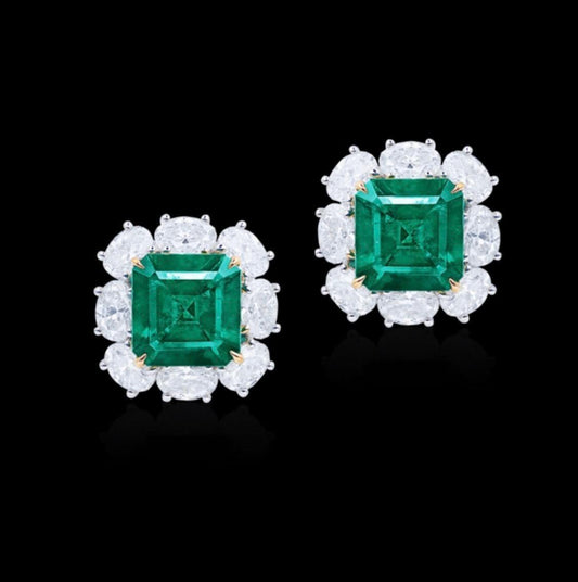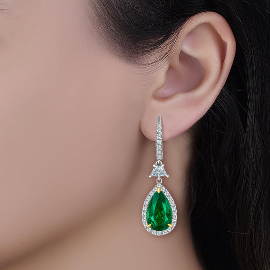 Emilio Jewelry Certified 6.70 Carat Vivid Green Colombian Emerald Earrings
