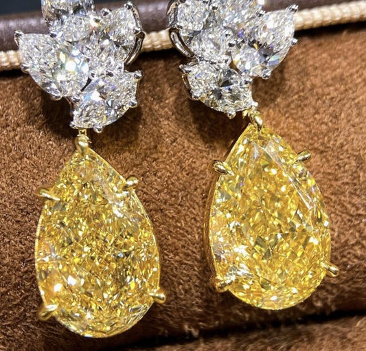 Emilio Jewelry Gia Certified 14.00 Carat Fancy Yellow Pear Diamond EarringsRegular price $260,000.00 USDRegular priceUnit price / per