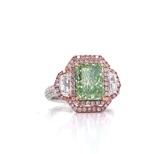 Emilio Jewelry GIA Certified 3.00 Carat Greenish Diamond Ring