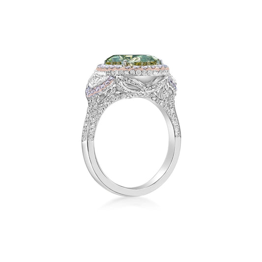 Emilio Jewelry Gia Certified Fancy Green Pink 4.10 Carat Diamond Ring