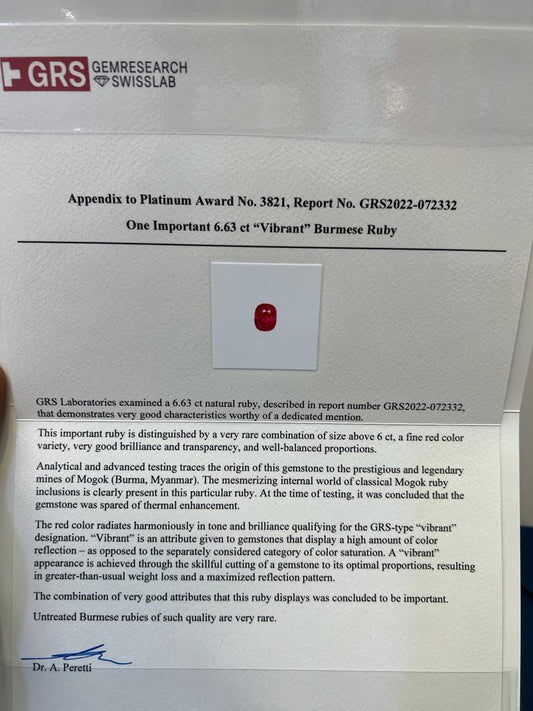 Emilio Jewelry Grs Certified Burma No Heat Ruby