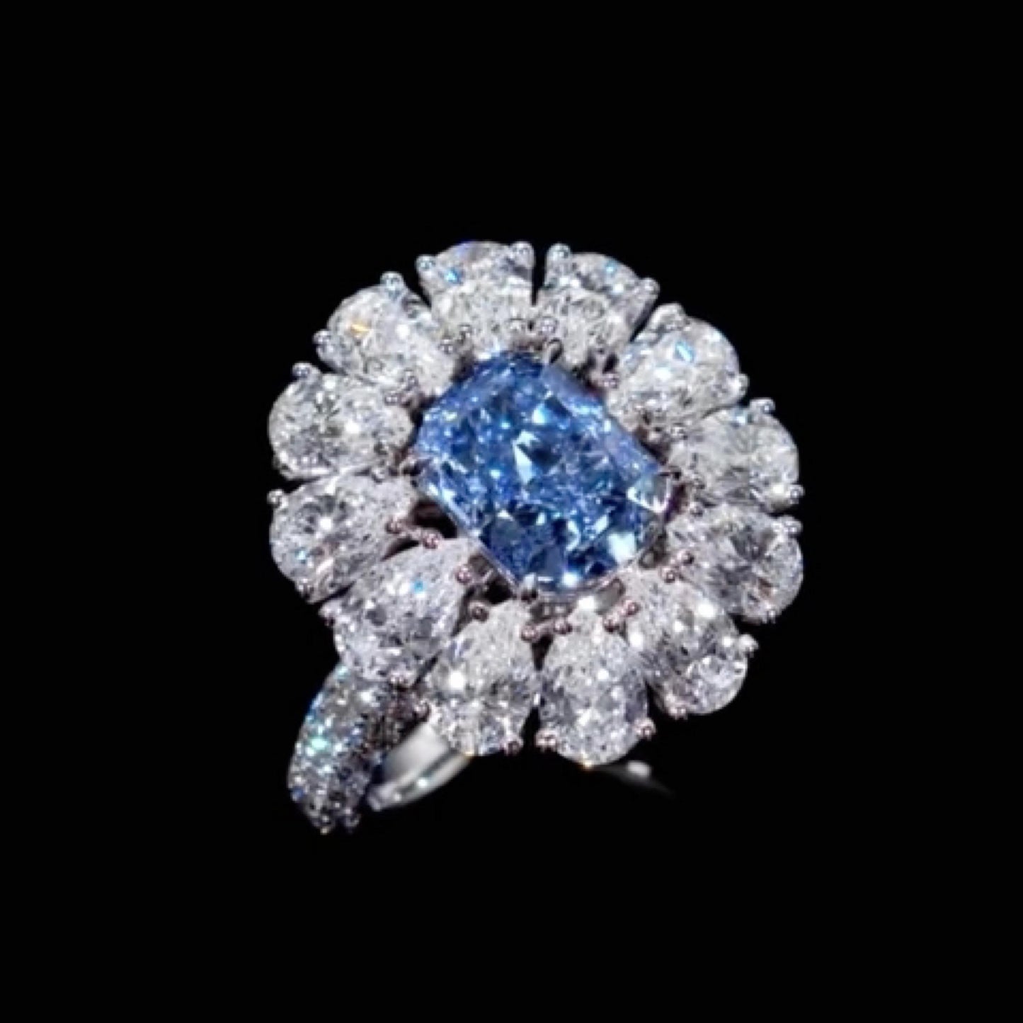 Emilio Jewelry GIA Certified Natural Vivid Blue Internally Flawless Diamond Ring